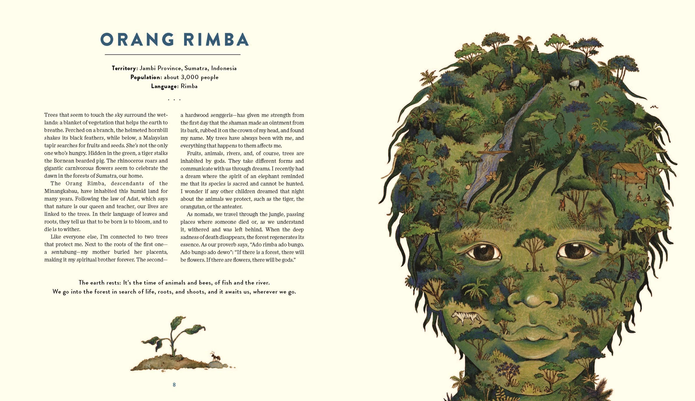 Franco-Uruguayan author Nat Cardozo has created a unique book with beautiful illustrations that blur the lines between humans and their environment and present a wide variety of ways of life from little-known cultures. In addition to collecting 22 first-person stories, this informative book is about the past and present of Indigenous peoples, recounting a long history of struggle and resistance and of defense—not only of their territories but also of their languages and traditional ways of life.