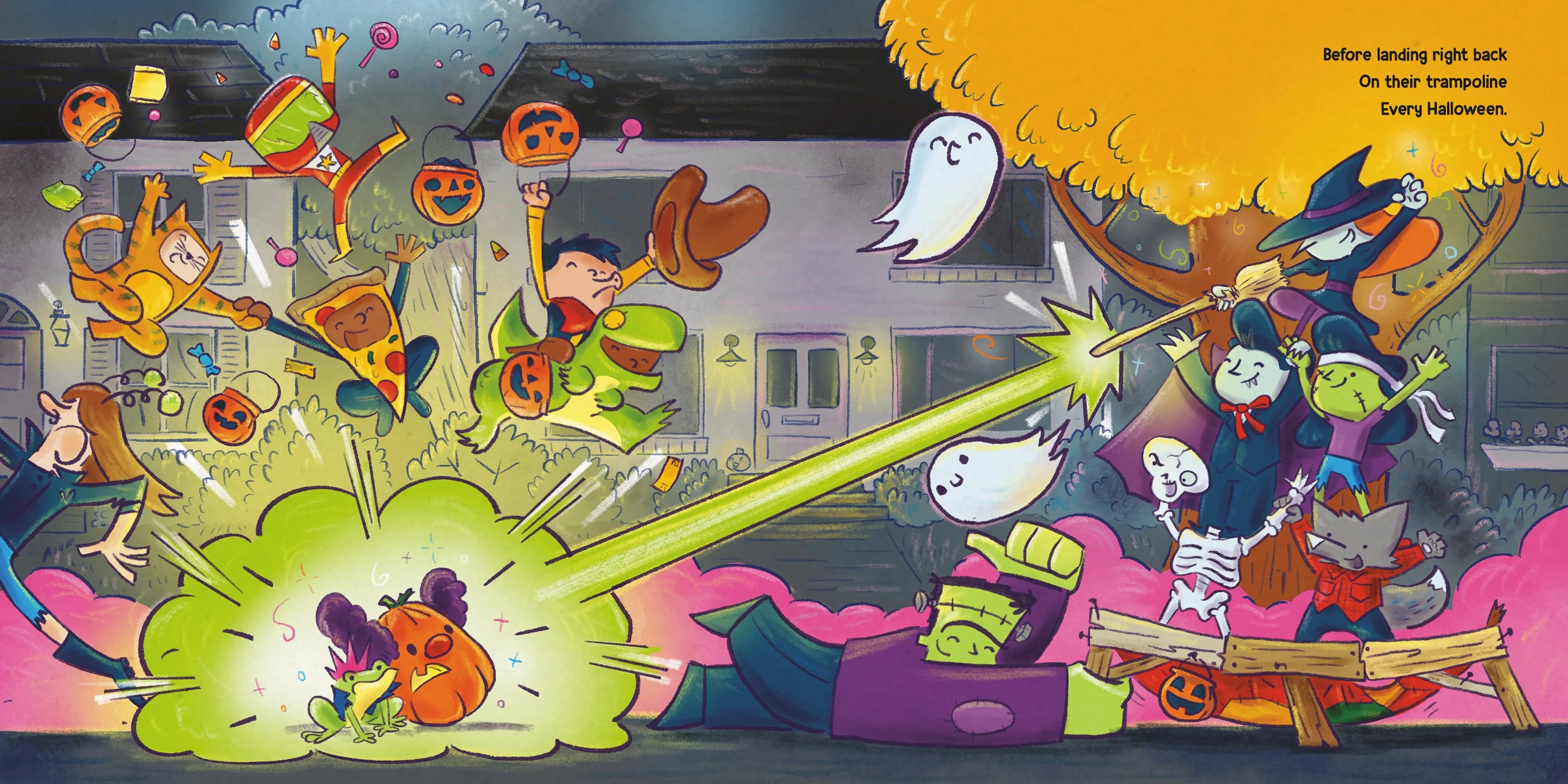 Halloween hijinks ensue when the monsters bring out their trampoline!